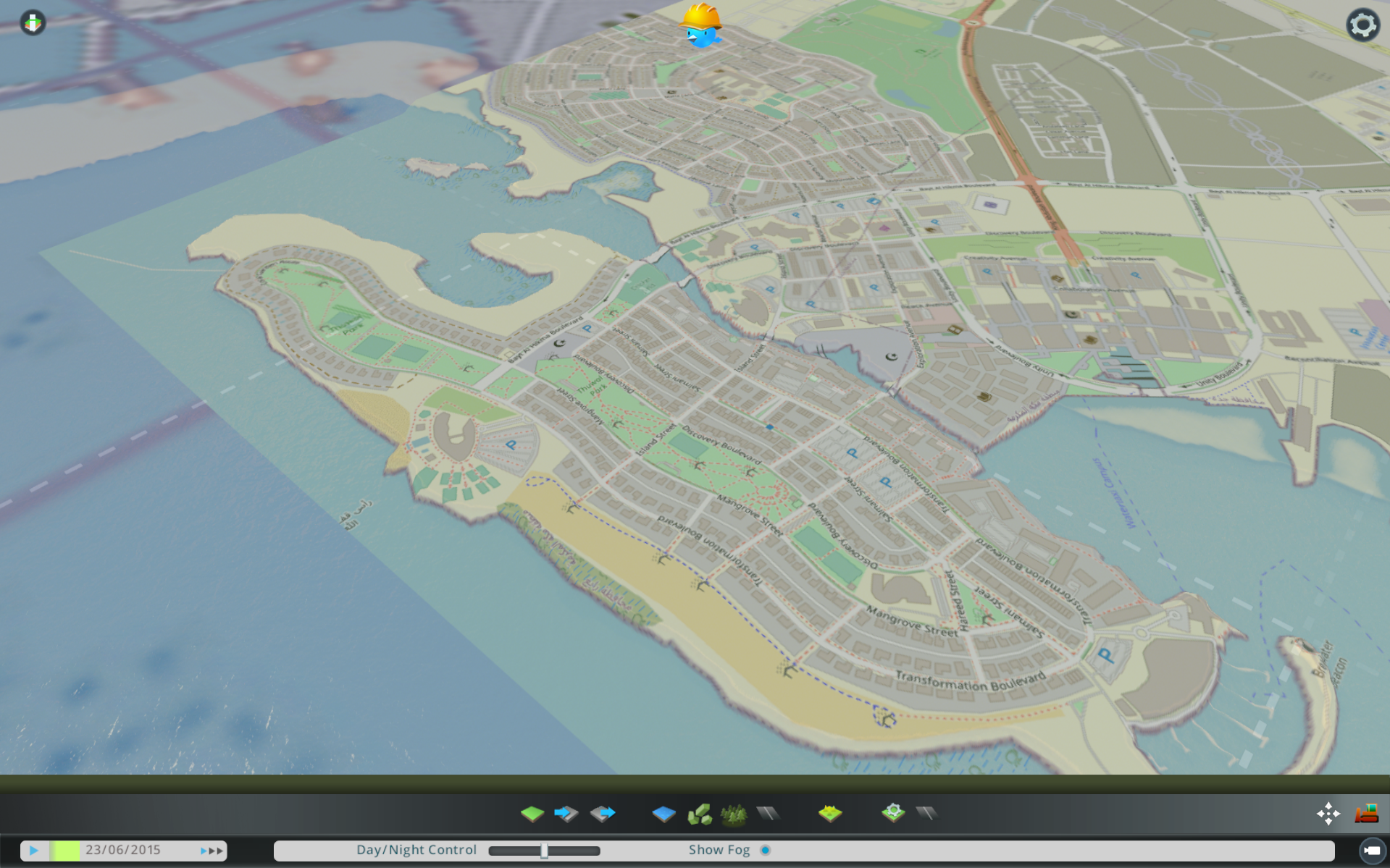 As for terrain generation, no height map data of the city was found, so I had to create my own height map using some photo editing, by selecting water and land and giving them solid gray values to represent their height.